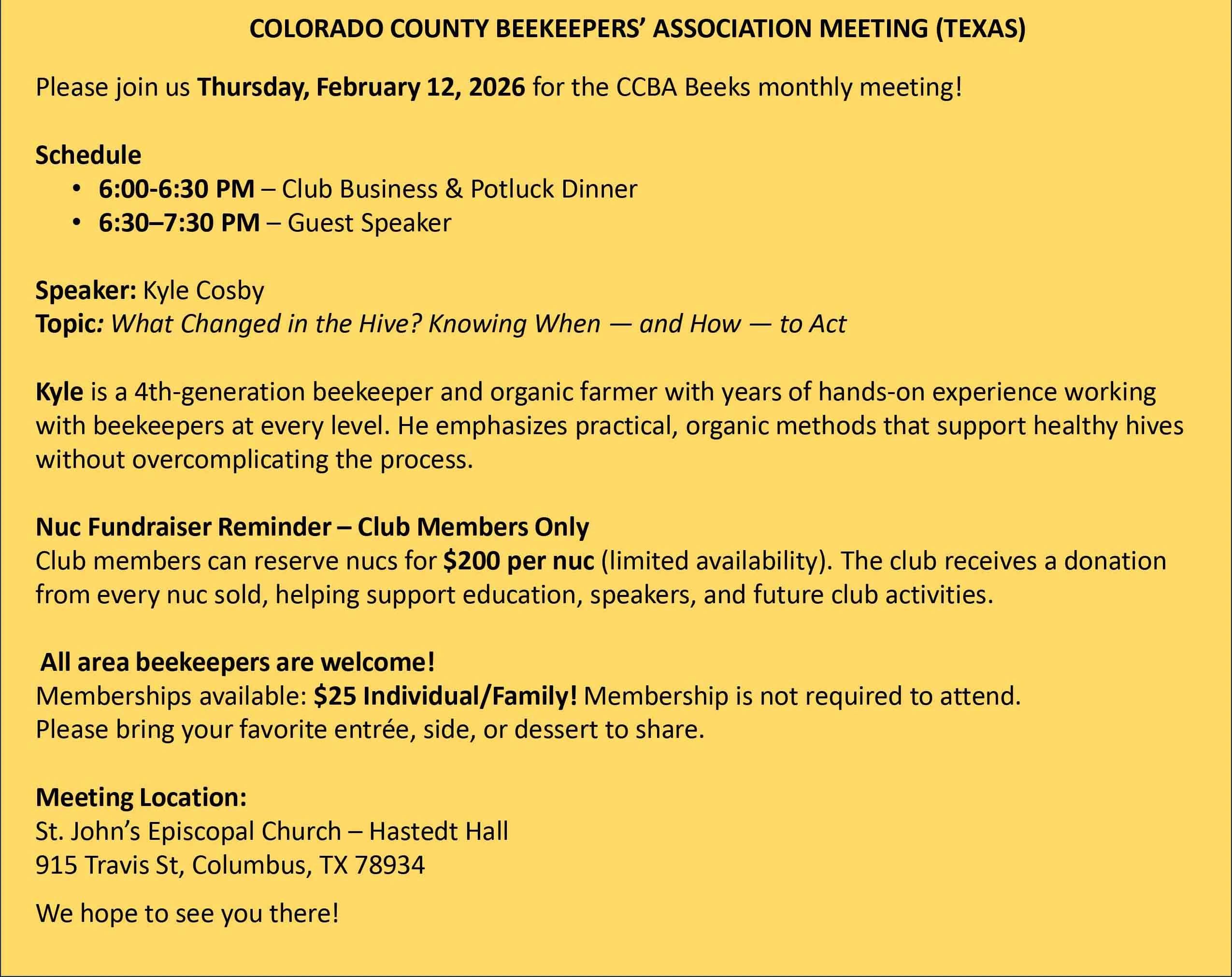 Copyright © 2026 Colorado County Beekeepers Association - All Rights Reserved.